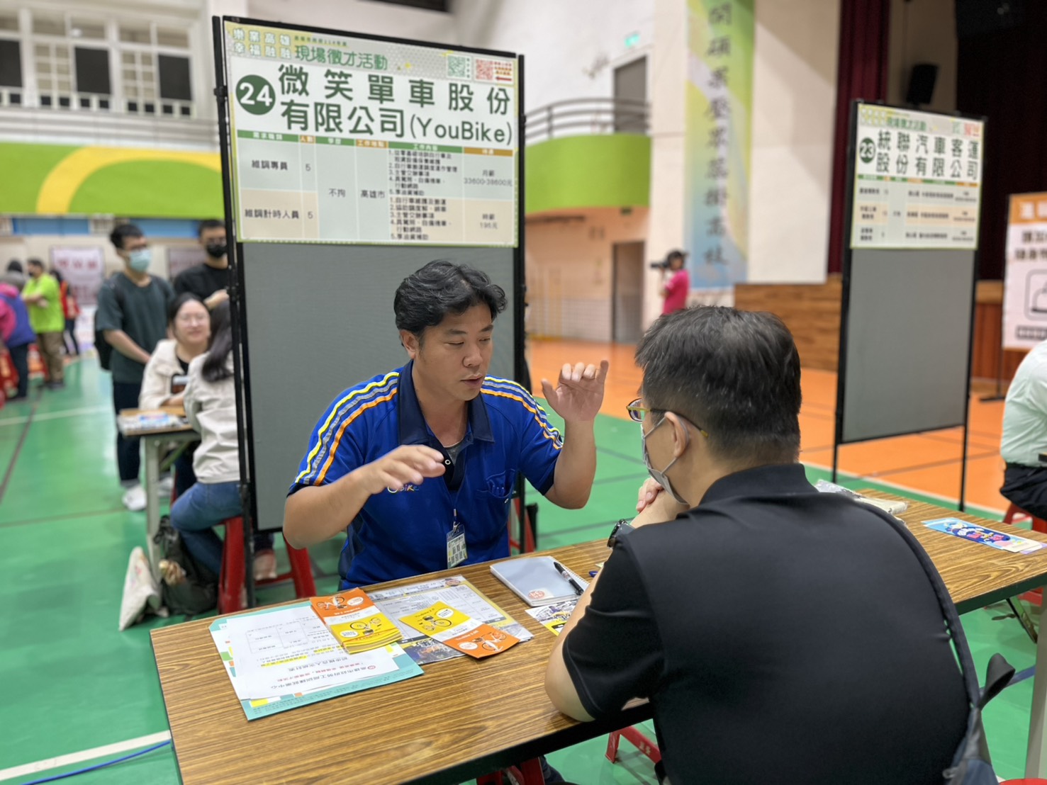 高雄市勞工局在龍華國中活動中心舉辦徵才活動,共有33家廠商提供各式工作職缺。(記者翻攝)