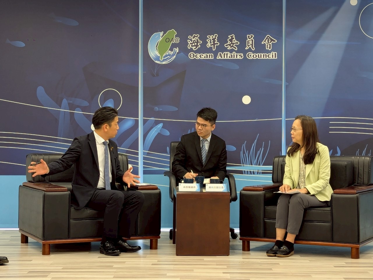 日本橫濱市議員森泰隆(圖左1)與海洋委員會副主任委員黃向文(圖右1)進行交流會談。(記者李佳龍/圖:海委會提供)