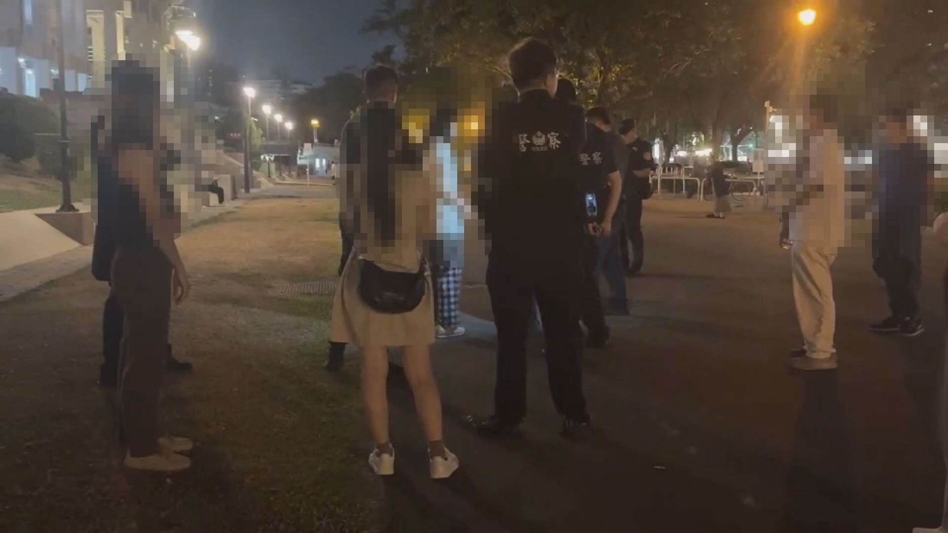 鳳山分局便衣員警盤查該名女子(圖中格子長褲者)時,擔心被女子脫逃,抓緊女子手腕處,導致女子手部受傷。一旁則是熱心民眾進行關切。(圖:讀者提供)