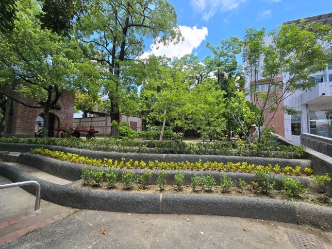 高雄市立圖書館橋頭分館:入口花台改善。(記者翻攝)