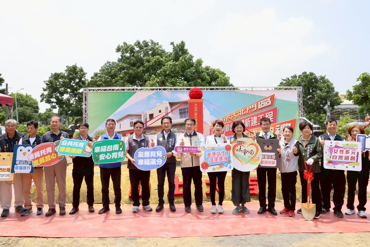 台南市政府致力建構完善的社福網絡系統,經爭取中央前瞻補助,將於學甲區新建大北門區社會福利綜合大樓,並於今(27)日舉行動土典禮,台南市長黃偉哲親自主持,並與立法委員林俊憲、陳亭妃,以及市議員蔡秋蘭、蔡蘇秋金、陳昆和、方一峰等眾多貴賓共同動土,工程預計於2026年完工啟用。
