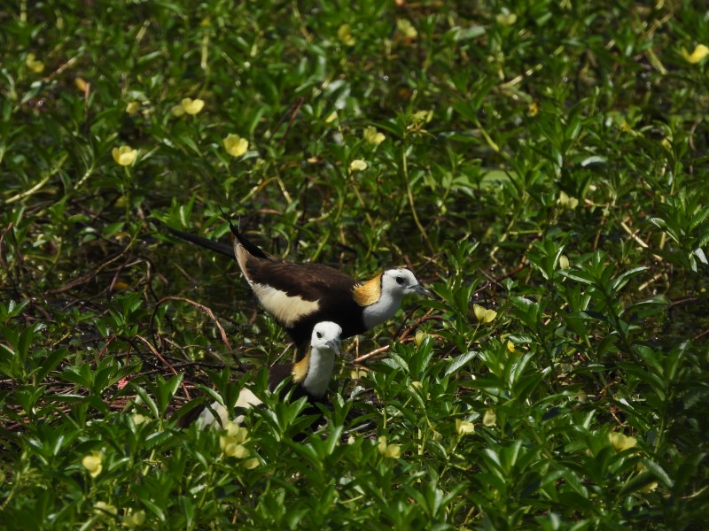 洲仔濕地保育類水鳥「水雉」已悄悄換上金黃繁殖羽。(記者翻攝)