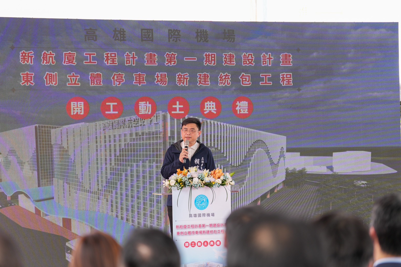 立法委員賴瑞隆致詞表示,高雄國際機場是南台灣重要國際門戶,就任後持續爭取高雄國際機場各項建設,擴大服務能量,由一開始257億整建預算持續爭取,最後由蘇貞昌前院長核定高雄國際機場新航廈計畫,分一、二期計畫,總建設經費來到880.8億元,整合國際線與國內線服務動線,新建第三登機指廊,同時將高雄捷運納入考量,可服務每年1650萬人次旅客,替高雄接軌國際奠定優良基礎。