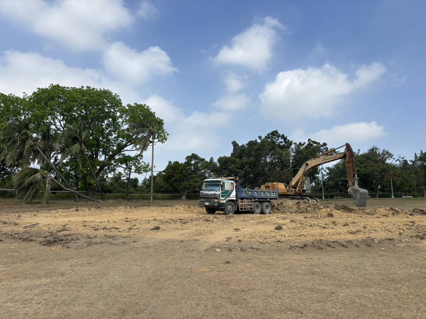 高雄高爾夫球場滯洪池施工。(記者翻攝)