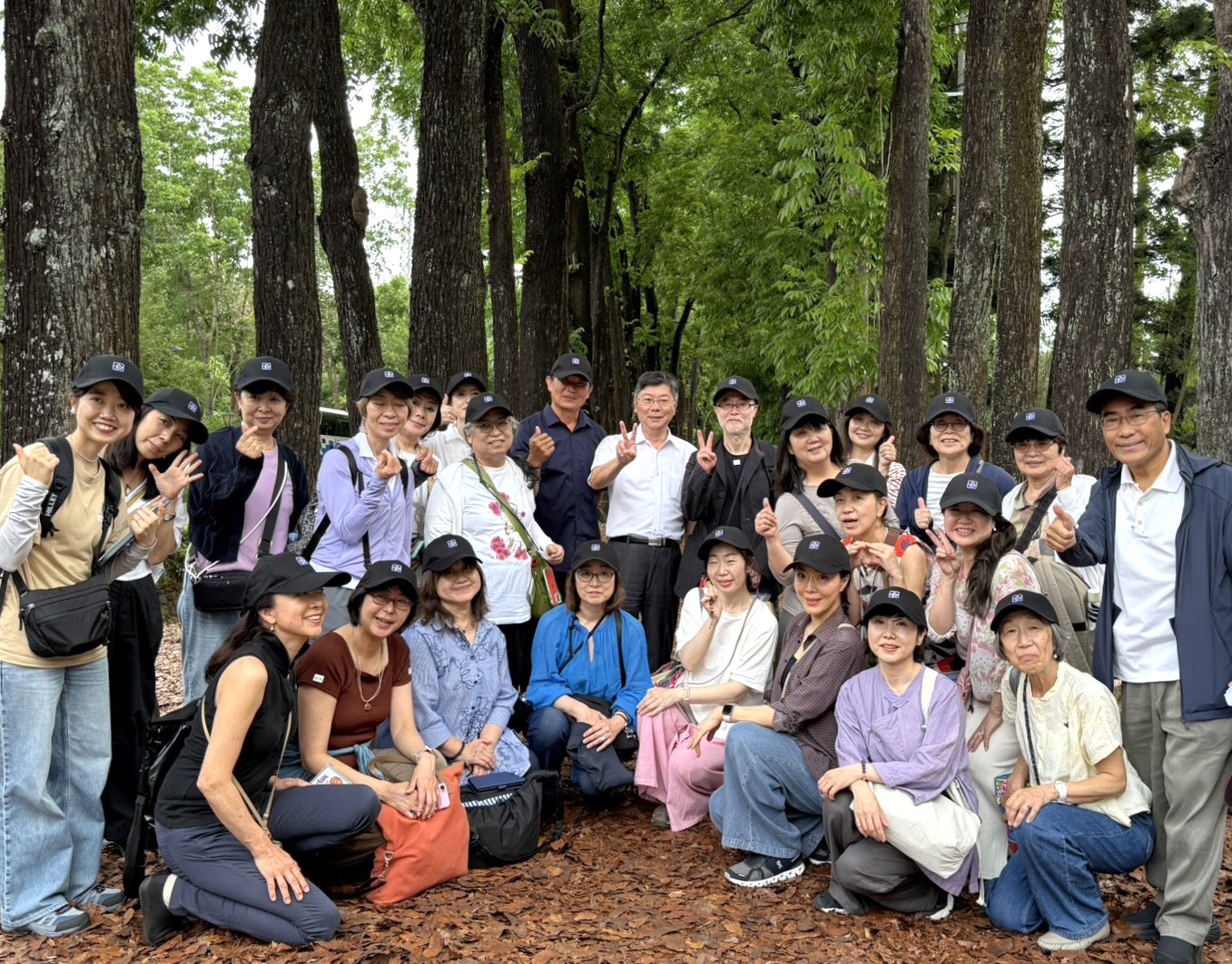 考察團由高雄觀光圈會員山茶故事館代表及新發社區發展協會成員陪同走訪,首站拜訪新威森林公園,由茂管處鄭偉宏副處長接待並致贈紫蝶LOGO帽,在志工深入淺出導覽協助日本貴賓了解新威森林公園林業歷史及茂管處遊憩資源,並於必訪的桃花心木下合影留念。