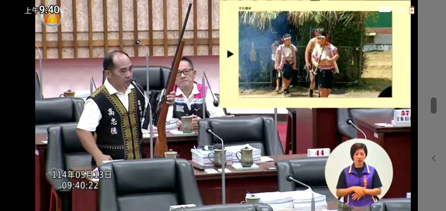 議員高忠德攜獵槍進議會質詢。(記者翻攝)