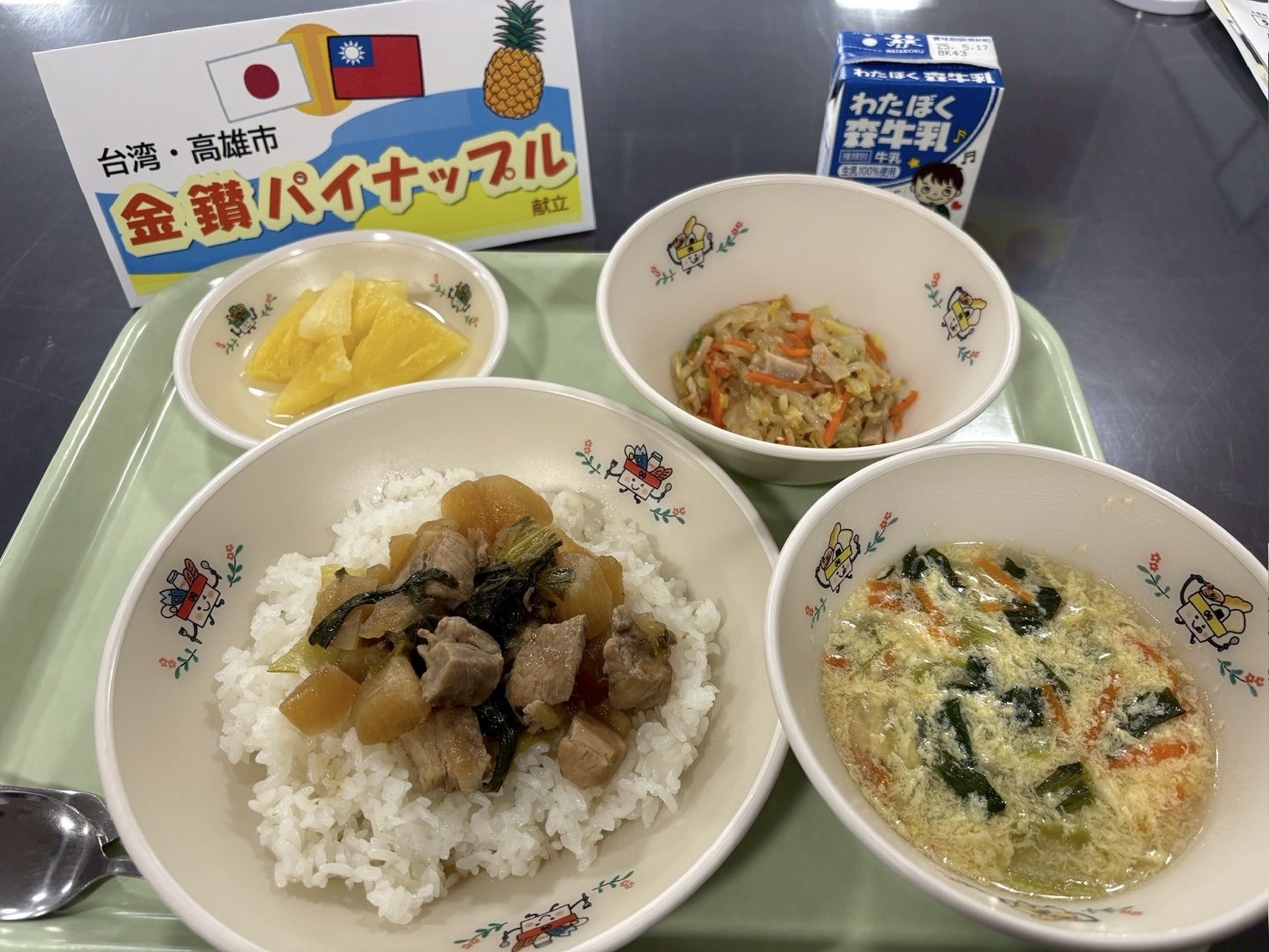 不只吃得開心,還學得有趣,為了提升學生對台灣的印象,校方更貼心推出「台灣料理菜單」,包括經典魯肉飯、暖心蛋花湯與清爽涼拌冬粉,最後以香甜高雄鳳梨作為完美收尾,讓學生們一邊品嚐、一邊認識台灣高雄,一口接一口大囋「歐依系」!東京八王子市教育委員會特別設計了食農教育教材,說明高雄地理位置及與姊妹市八王子市之情誼,讓遠在日本的同學更了解鳳梨抵達餐桌過程,高市府農業局特地前往高雄大樹區拍攝鳳梨生長、採收、清潔、分級及包裝的畫面,並邀請種植鳳梨的農友以日文方式介紹「高雄鳳梨好吃!」,提供日方食農教育影片,從生產到餐桌,藉由高雄鳳梨擴大國民外交、促進台日交流。