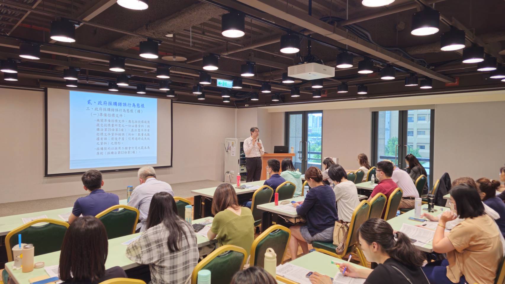 「採購稽核研習」專題講座課程中,參與對象擴及各中央部會及地方政府,共109人參與。(記者李佳龍/翻攝)