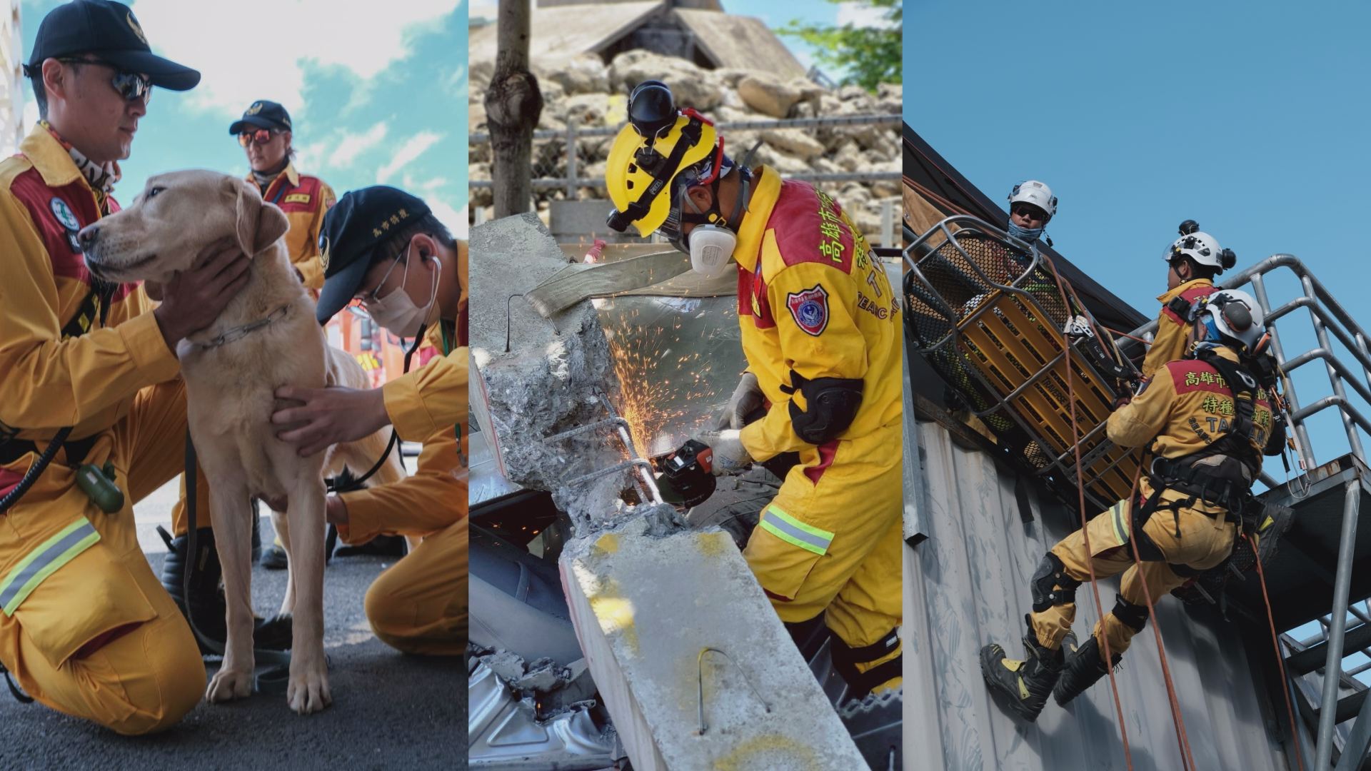 搜救隊員操作專業設備,模擬從倒塌建築中救援受困人員。(記者李佳龍/翻攝)
