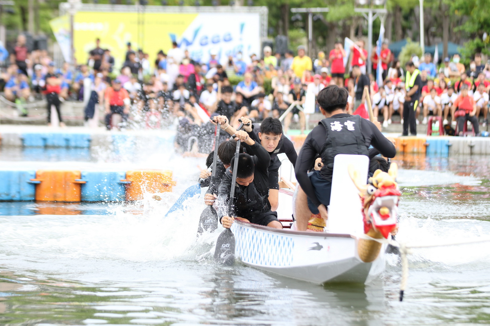 今日上午已先進行龍舟拔河競賽,其中公開組冠軍由健身工廠奪得、女子組冠軍為健身工廠、混合組冠軍為日月光代表隊、大專混合組冠軍為海軍官校、高中職混合組冠軍為旗美高中冠軍隊。