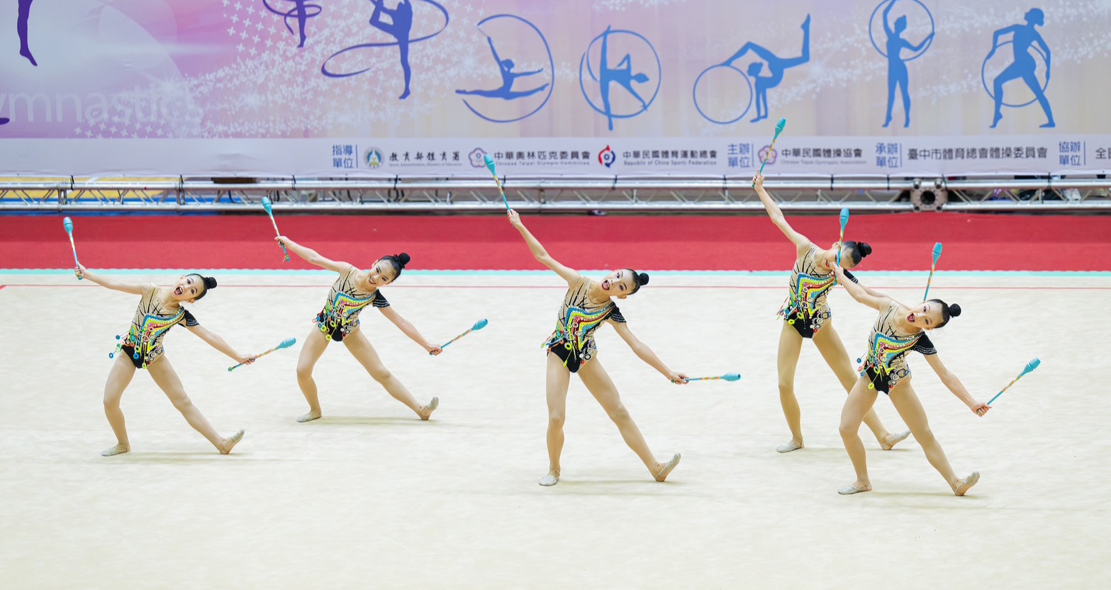 比賽中,選手們動作整齊一致,完全展現出選手們優雅柔美的姿態,尤其揮舞流暢的彩棒操作,展現超精彩的力與美,就像舞台上運動精靈,隨著音樂節奏變換優美舞姿,來自於平日選手辛苦訓練,運動美學超級吸睛。