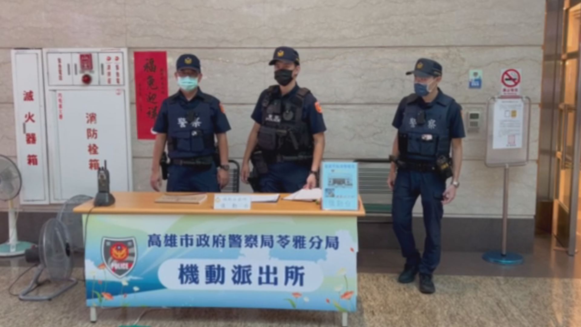 高市警苓雅分局在85大樓內「機動派出所」的設置點,並且24小時員警待命輪值守望勤務。(本報資料畫面)