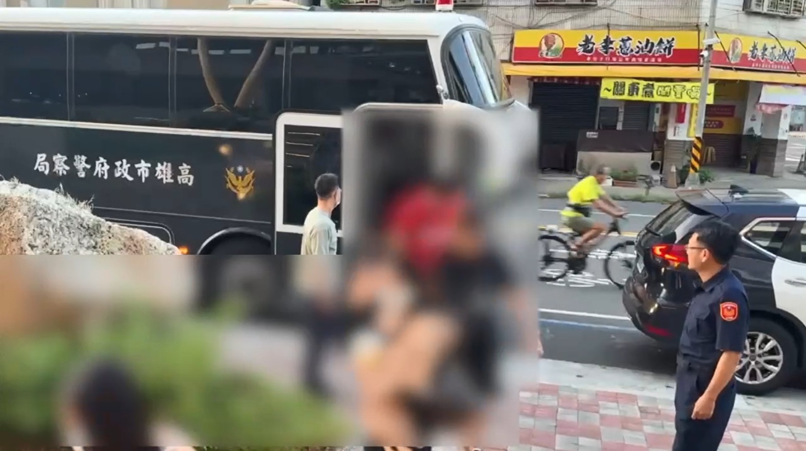 被捕的賭客及工作人員人數眾多,警方以大型巴士載返所並移送偵辦。(記者李佳龍/翻攝)
