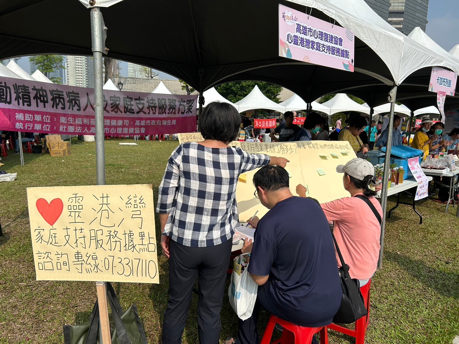 高雄市心理復健協會於精神康復者活動中進行家屬座談會和專線業務宣導。(記者翻攝)