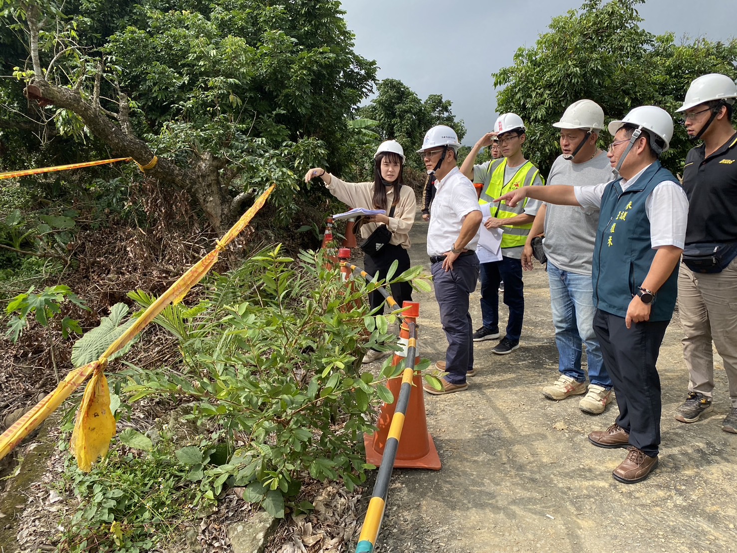 113年7月凱米颱風龍崎區牛埔里烏山頭里道(龍船幹193左支12) 等3件併案災後復建工程」抽查作業。(記者翻攝)