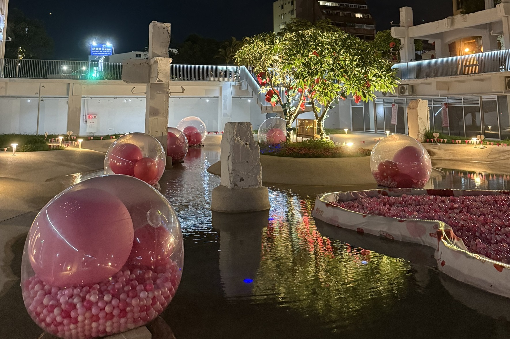台南市河樂廣場啟動「520愛情許願池」活動以來,吸引眾多情侶與遊客前往體驗浪漫場景,活動已進入最後倒數。(記者翻攝)