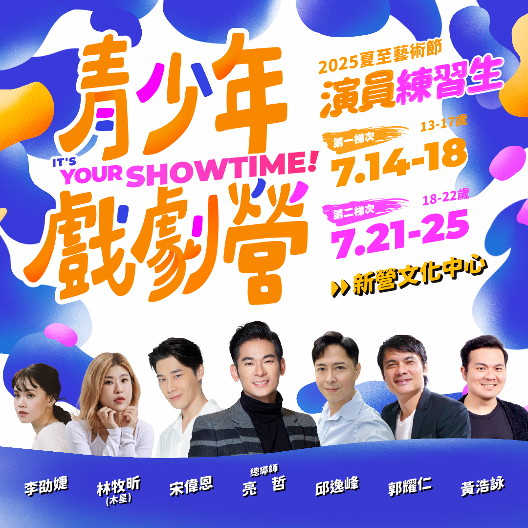 夏至藝術節另一焦點活動《兒童戲劇桌遊沉浸營》由果陀劇場學務長江國生帶領9-12歲學童結合桌遊與戲劇表演,劇團公告資訊不到一周已報名額滿。而為提升青少年藝文參與人口,文化局今年加碼策劃【藝工隊】主題營隊《演員練習生X青少年戲劇營》專為13至22歲青少年打造沉浸式戲劇體驗,由明星總導師亮哲、課程顧問黃毓棠集結劇場專業師資李劭婕、邱逸峰、郭耀仁、黃浩詠及人氣演員宋偉恩、林牧昕(木星)擔任客座講師。7月14日至18日第一梯次(13-17歲)線上報名https://forms.gle/59Z7uDjqwUpM5BES8;7月21日至25日第二梯次(18-22歲)線上報名https://forms.gle/bmmLpZvuJB7heGWk7 每梯次限額25人,參與課程還加贈7月26日李國修紀念作品《三人行不行》演出票券乙張,早鳥優惠至6月30日,機會難得!