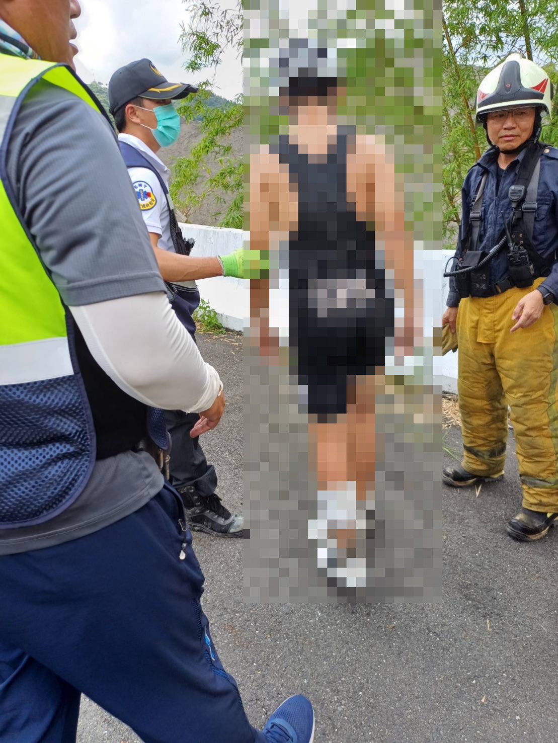 接獲通報後立即派員前往現場實施交通疏導及安全管制,並通報消防單位進行救援。消防人員於09時42分抵達現場,發現一名13歲陳姓少年跌落邊坡,經初步檢視其左腳受傷,意識清楚,現場進行包紮後於10時09分完成救援,後續由119救護人員送往署立旗山醫院進一步治療。