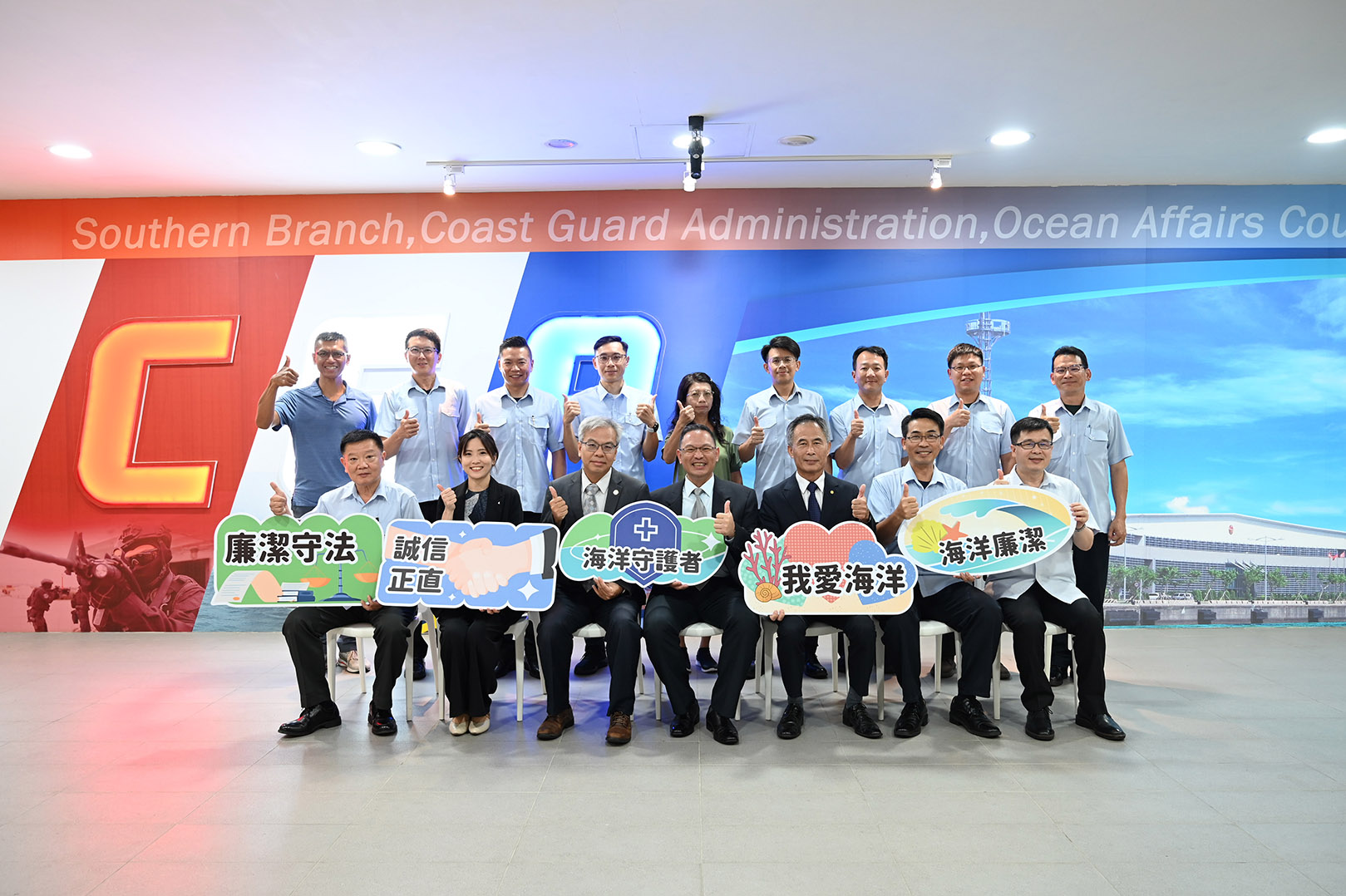 海巡署南部分署舉行「法律諮詢室」揭牌儀式,高雄律師公會理事長葉孝慈、及海巡之友總會南部分會會長王文成共同出席,象徵法律諮詢服務的啟動。(記者李佳龍/圖:海巡署提供)