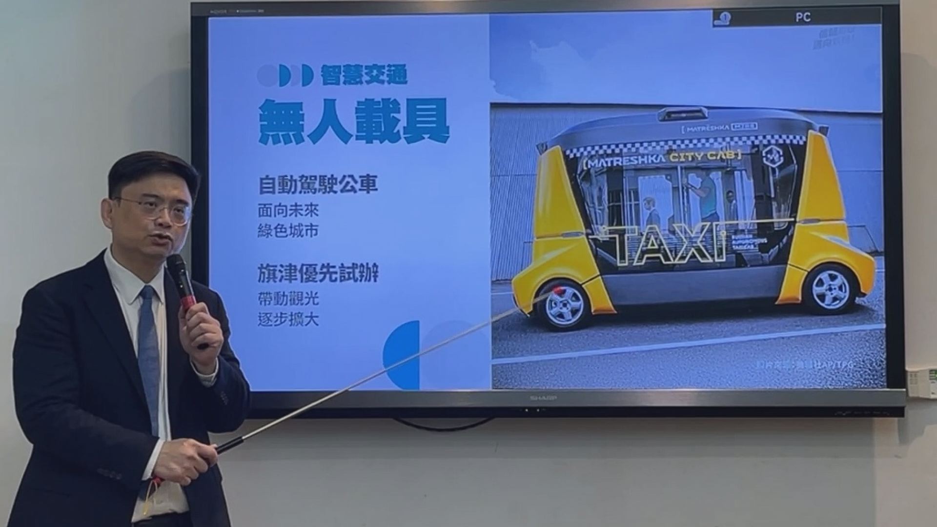 立委賴瑞隆指出「擴大無人載具應用」,參考國際成功案例,優先在旗津推動「無人載具遊島接駁」,強化觀光服務並減少碳排放,讓高雄成為綠色運輸首都。(記者李佳龍/圖:立委賴瑞隆國會辦公室提供)