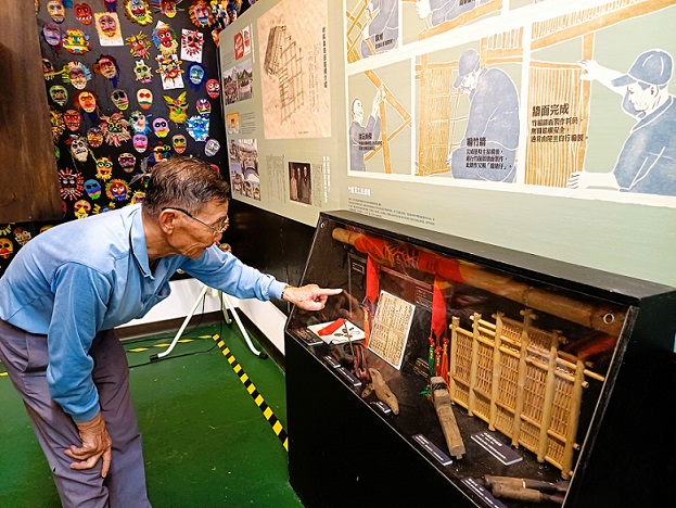 圖說:溪南寮興安宮文物館內展示扛茨走溪流的歷史資料,也有蓋竹籠茨的工具。(張耘書拍攝)