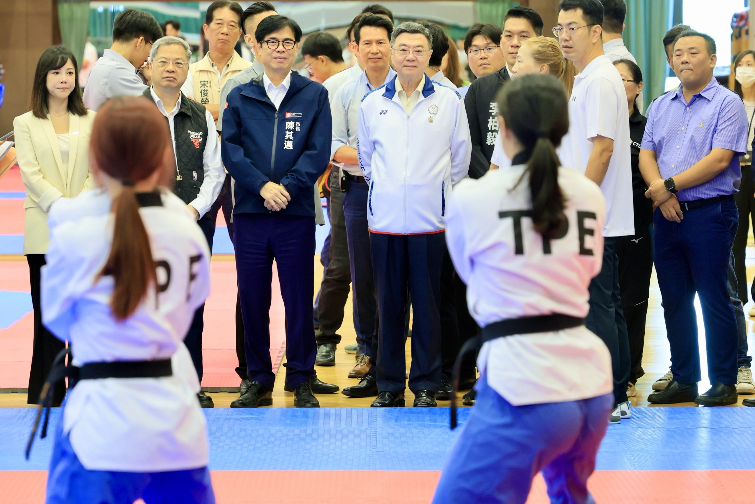 【記者林韋呈/高雄報導】2025年夏季世界大學運動會將於7月16日在德國萊茵魯爾舉行,高雄市長陳其邁今(4)日陪同行政院長卓榮泰,前往國家運動訓練中心訪視世大運代表隊訓練與後勤整備情形,實地瞭解各項運動比賽形式,並關心擊劍、跆拳道、柔道及田徑隊的備戰狀況。他勉勵選手們全力以赴、發揮最佳狀態,帶著爭取金牌的氣勢與決心勇敢出征,為國爭光。