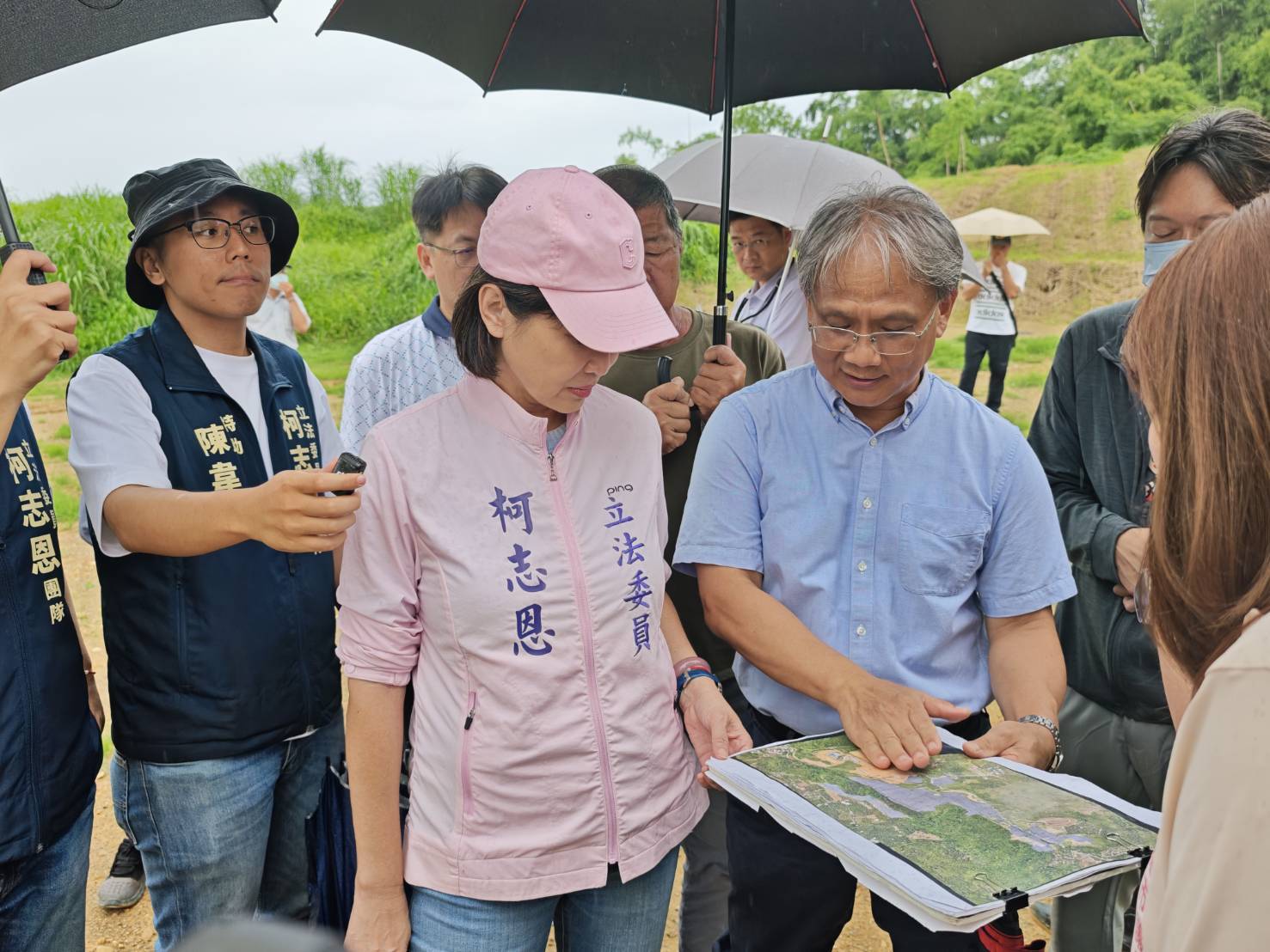 丹娜絲颱風逼近,國民黨立委柯志恩會同和山里里民至和山光電案場關心水保改善狀況。(記者翻攝)