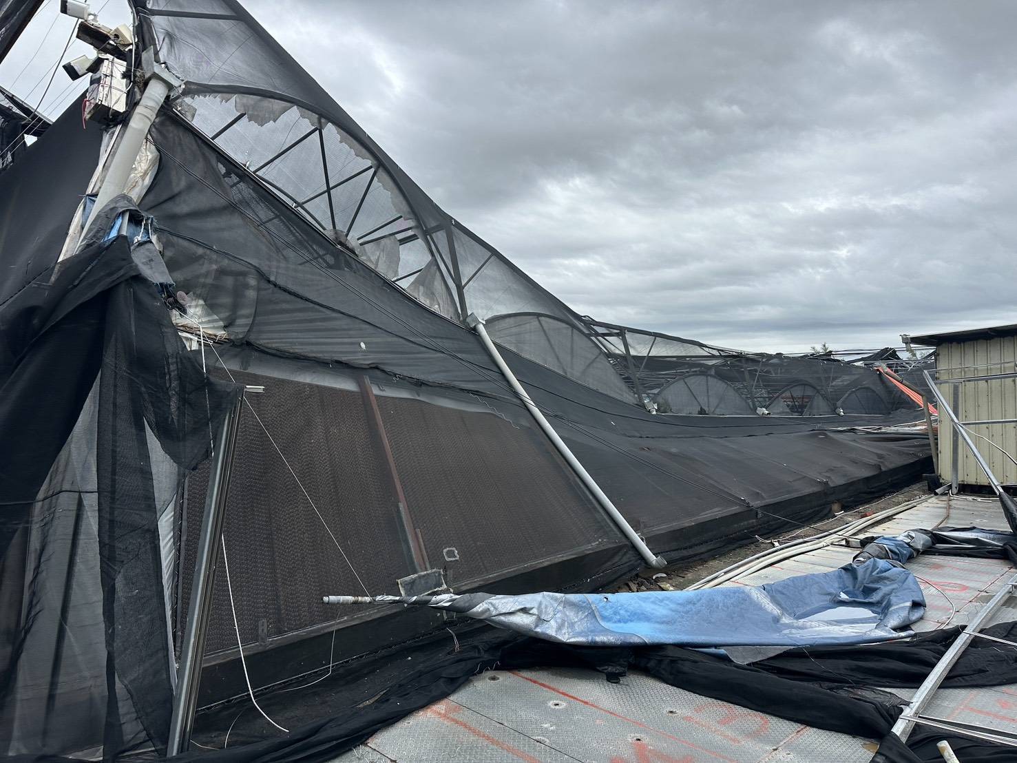 蘭花溫室結構受損,組培瓶也毀壞。(記者翻攝)