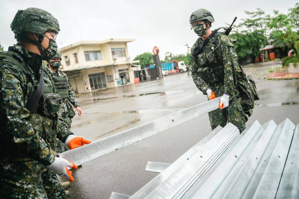 官兵搬運徵用物資並進行分配作業。(記者翻攝)