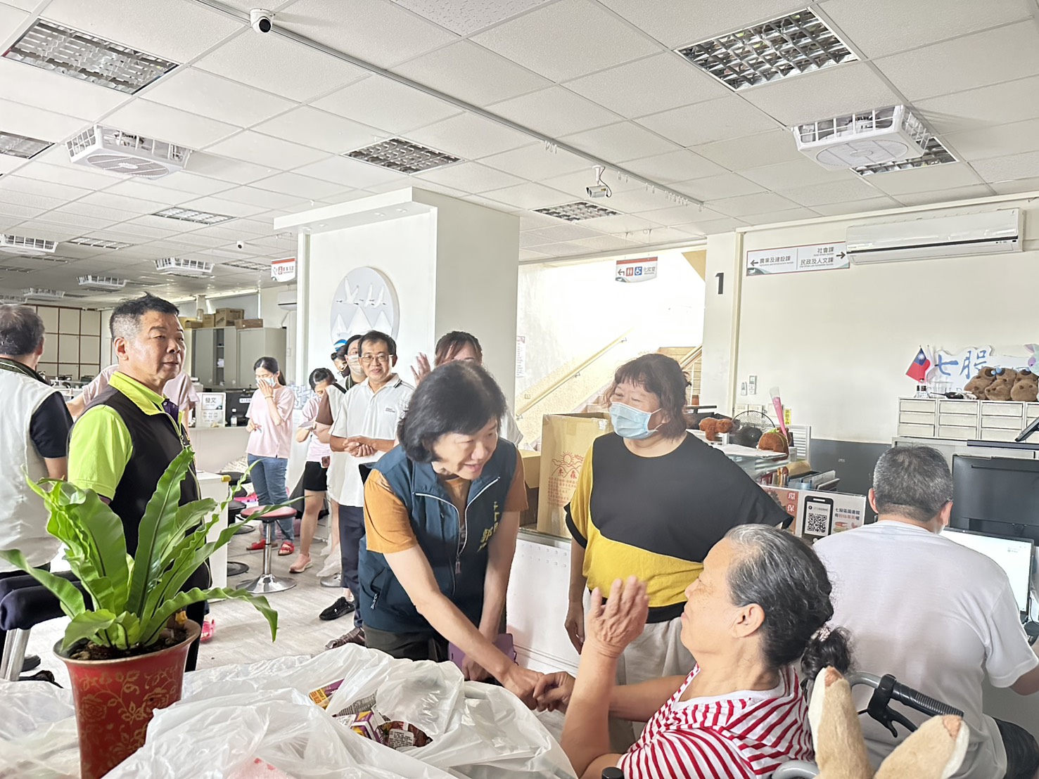 社會局長與社工前往收容所慰問災民。(記者翻攝)