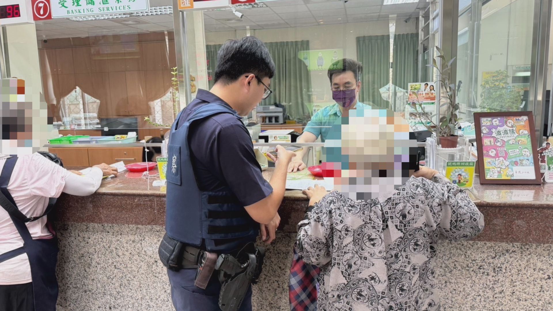 警方與郵局行員向蘇姓婦人解釋詐團詐騙手法,並進一步聯繫其兒子,保住了老婦的養老金。(記者李佳龍/翻攝)