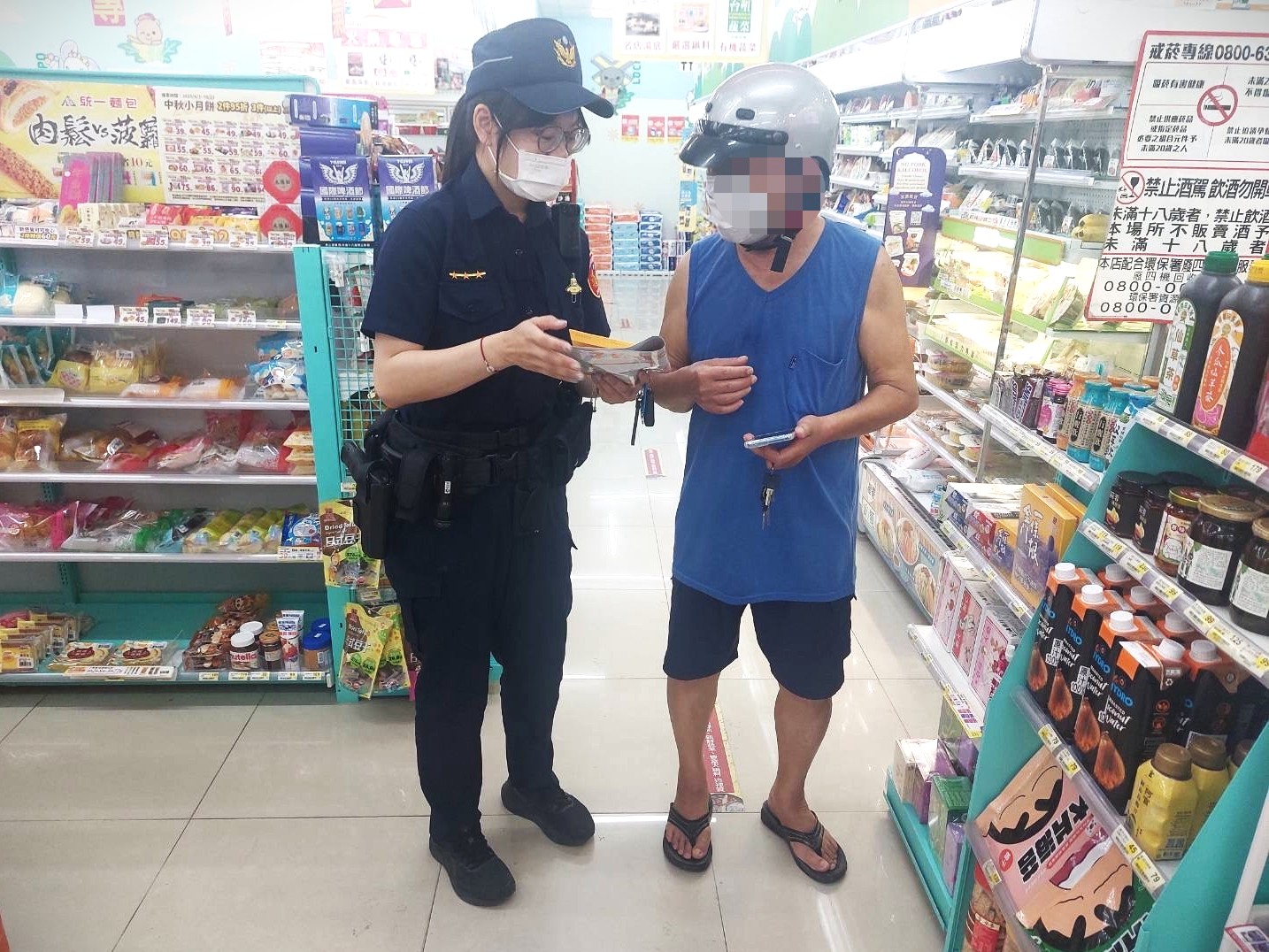 美濃鄭姓老翁在超商準備將兩張金融卡宅配寄往外地,店員報警協助,在店員與警方聯手下成功阻詐。 (劉昱彣攝)