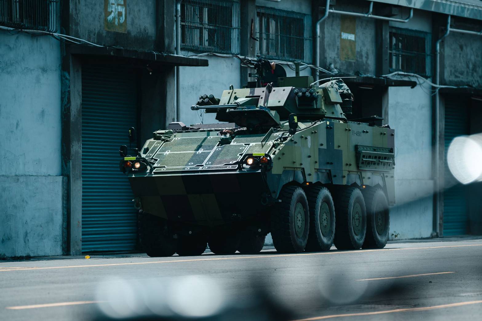 333旅所屬部隊於今早接獲敵情後,連長立即向戰備部隊下達命令,戰術機動至重要目標防護地點。抵達目的地後,車組官兵成員立即實施下車戰鬥,在雲豹八輪甲車的火力掩護下,持續向目標區域搜索前進,並成功佔領目標區域,確保重要目標安全。過程中,依照隨機狀況,彼此以火力交互掩護、向前推進搜索,官兵靈活運用戰術思維,達成實戰化訓練目的,同時更加掌握責任區內地境樣貌,建構完整作戰效能。