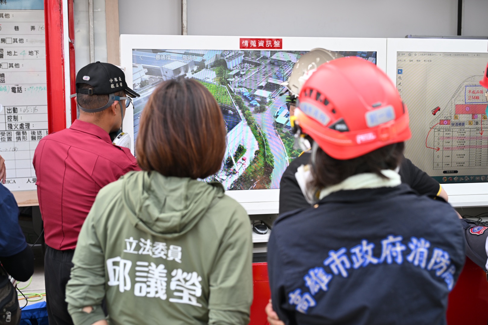 邱議瑩慰問仍在現場持續監控的第一線消防同仁,並要求市府與中央經濟部,要共同討論並且制定安全的SOP,避免類似情形再次發生,以及強化如本次投入救災的消防機器人等裝置,救災的同時也要減少火警對消防同仁的威脅。