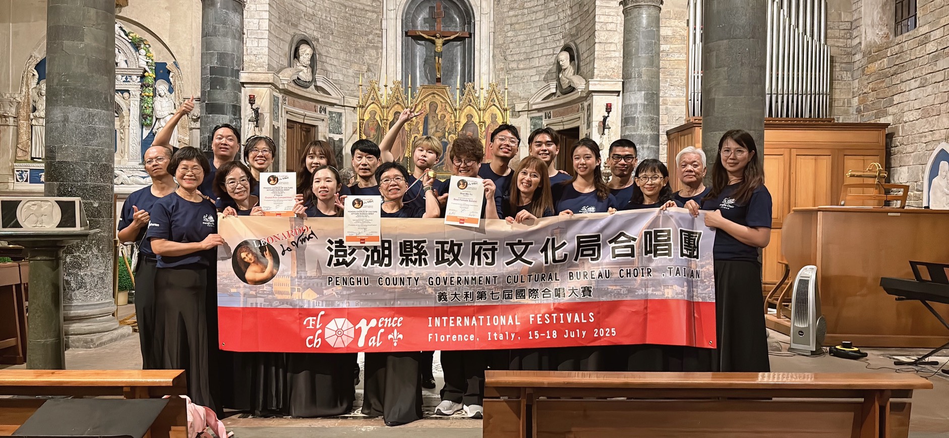 澎湖縣政府文化局合唱團於本(7)月13日遠赴義大利佛羅倫斯,參加第七屆李奧納多達文西國際合唱大賽(Leonardo da Vinci International Choral Festival),在來自西班牙、美國、中國、臺灣等國家的優秀合唱團隊中脫穎而出,榮獲室內合唱組金獎第一名,並於總決賽獲得金獎第四名。澎湖縣長陳光復向全體團員表達祝賀,高度肯定團隊實力,為澎湖、也為臺灣爭取了國際榮耀。