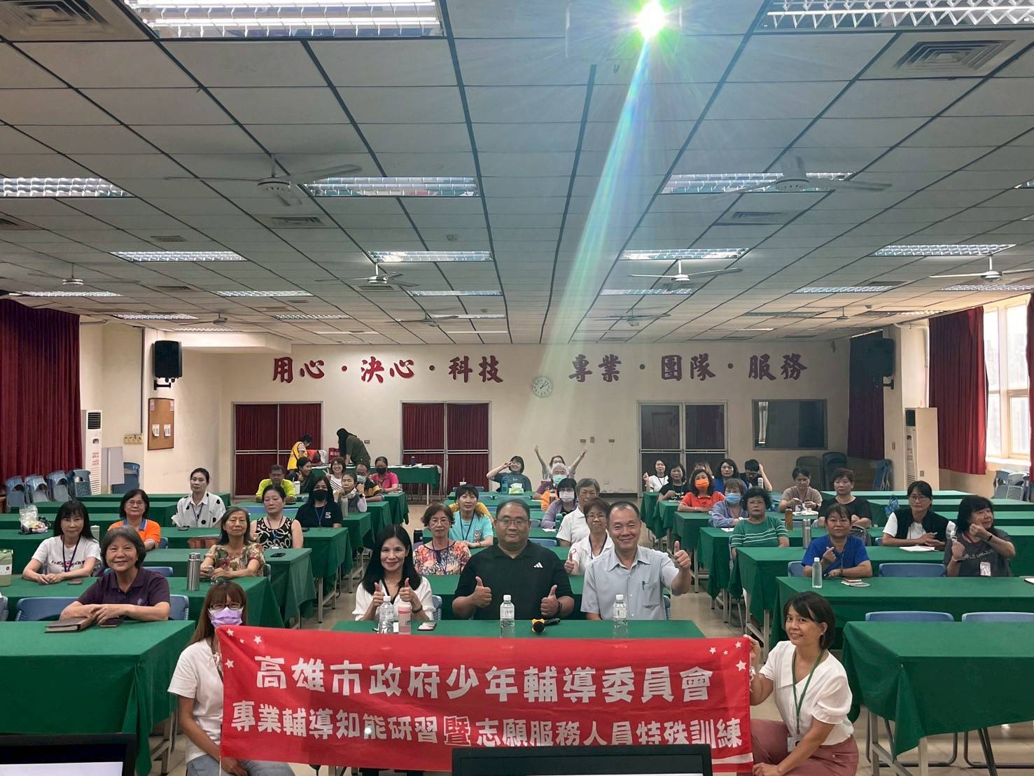 高雄市少年警察隊與少年輔導委員會的輔導人員及學員們合影,共同參與此次「專業輔導知能研習暨服務人員特殊訓練」,為守護青少年努力。(圖:記者李佳龍/翻攝)