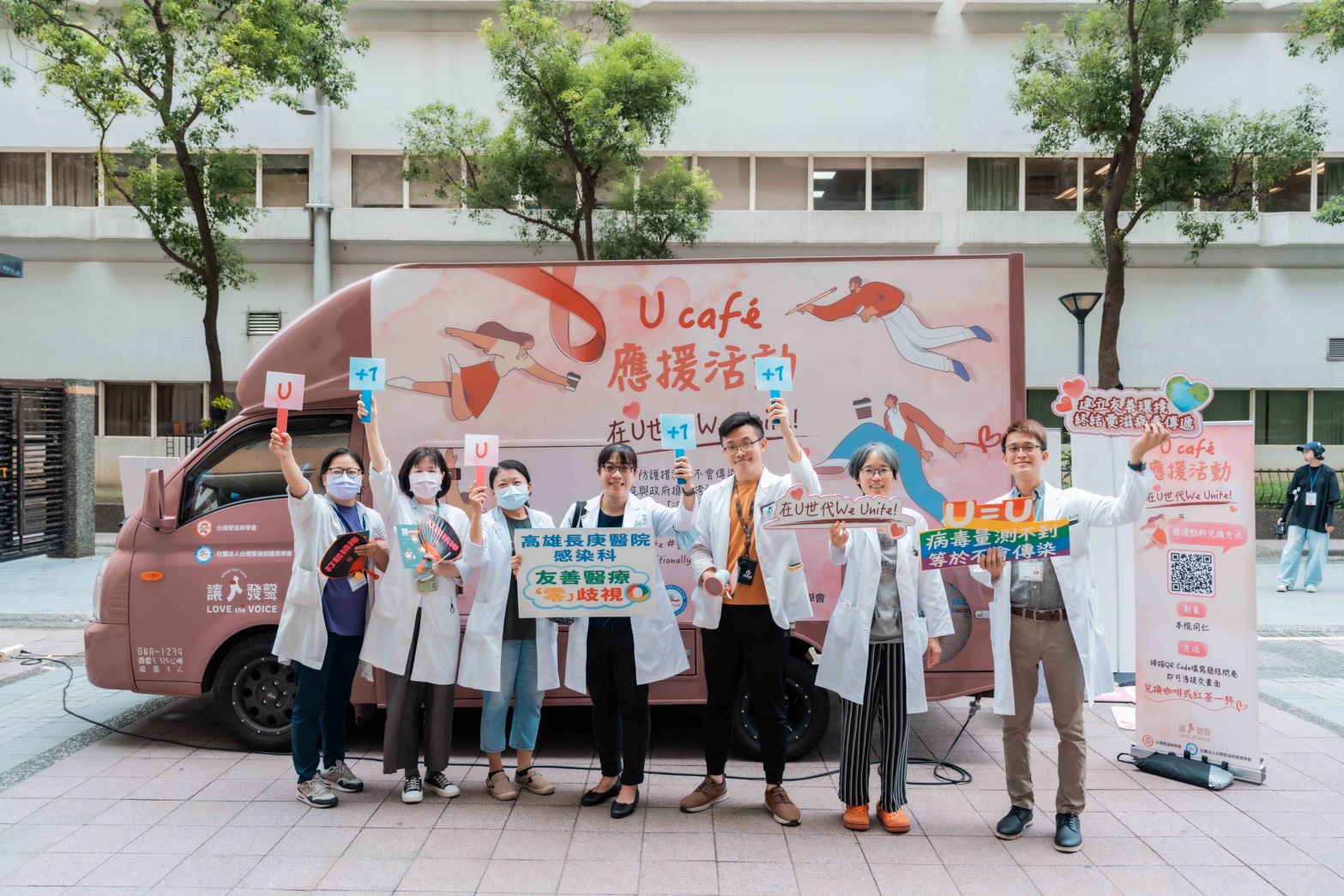高雄長庚紀念醫院今年響應以「在U世代·We Unite」為主題的U Café應援活動,透過現場提供免費咖啡、互動藝術創作與知識宣導等方式,不僅感謝辛勞的醫護同仁,更藉此翻轉社會對愛滋的刻板印象。(記者翻攝)