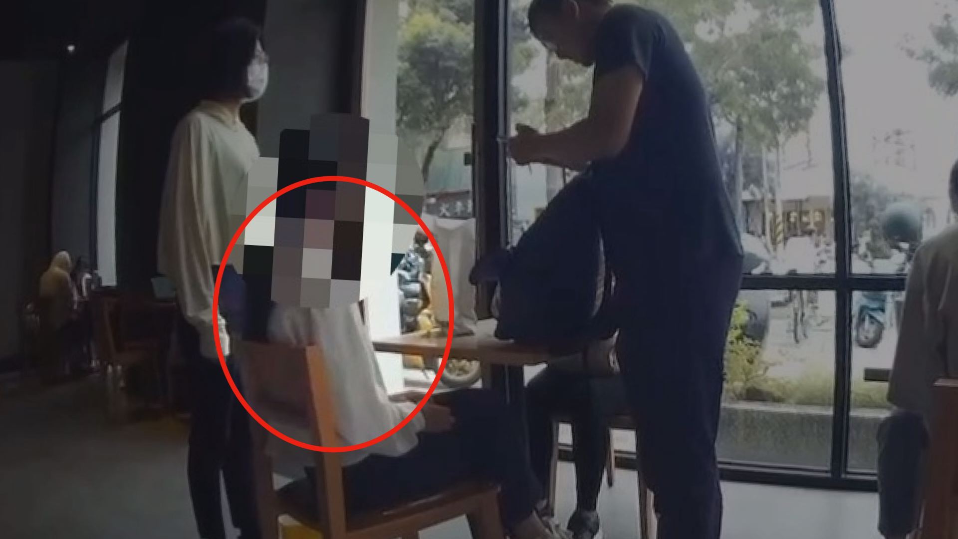 警方在咖啡廳內,順利逮捕到21歲女詐騙車手(紅圈處)。(圖:記者李佳龍/翻攝)