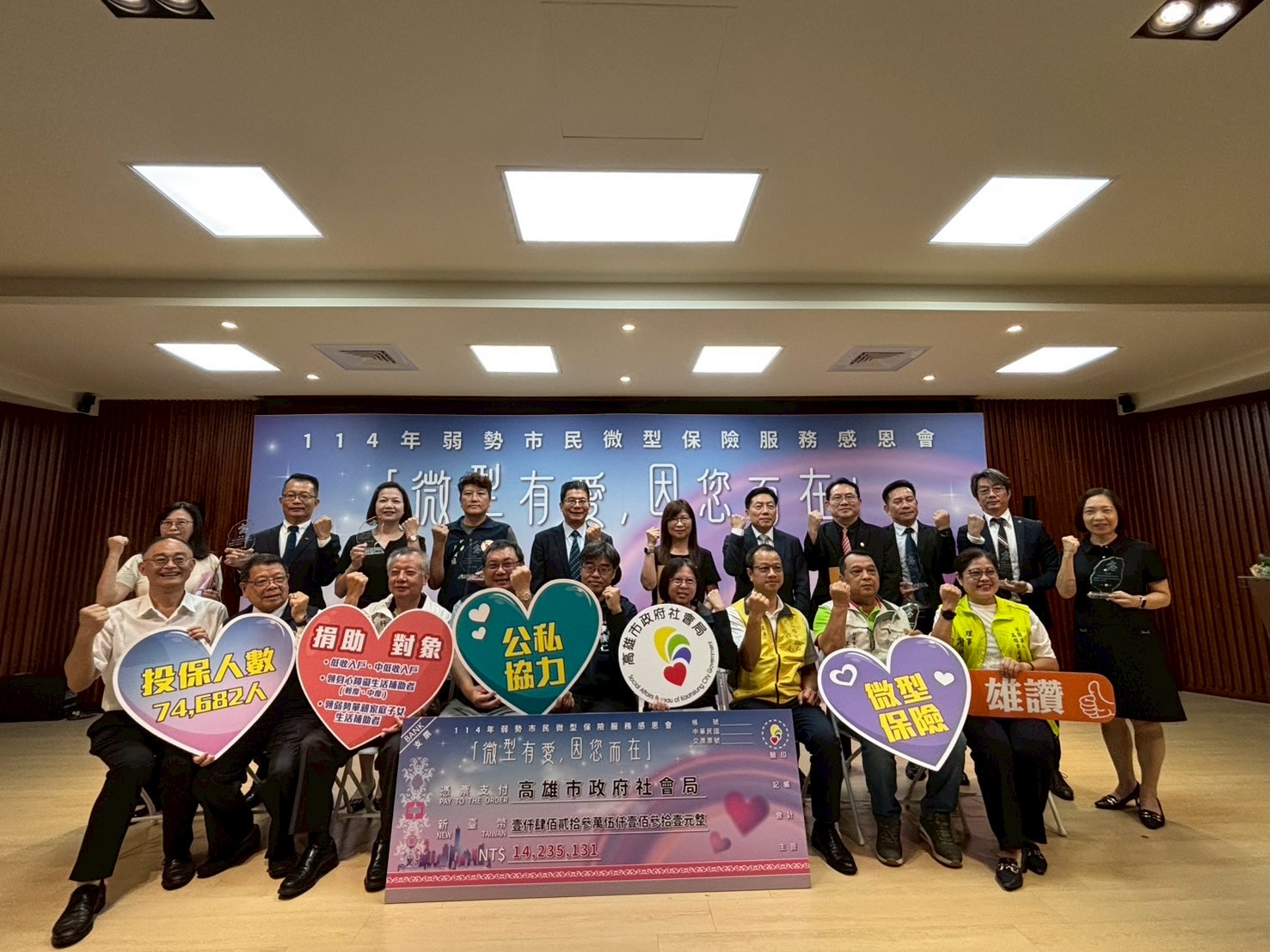 114年高市府社會局媒合7個民間單位及9家企業共16個單位,協力提供約74,682位弱勢市民投保微型保險。(記者翻攝)