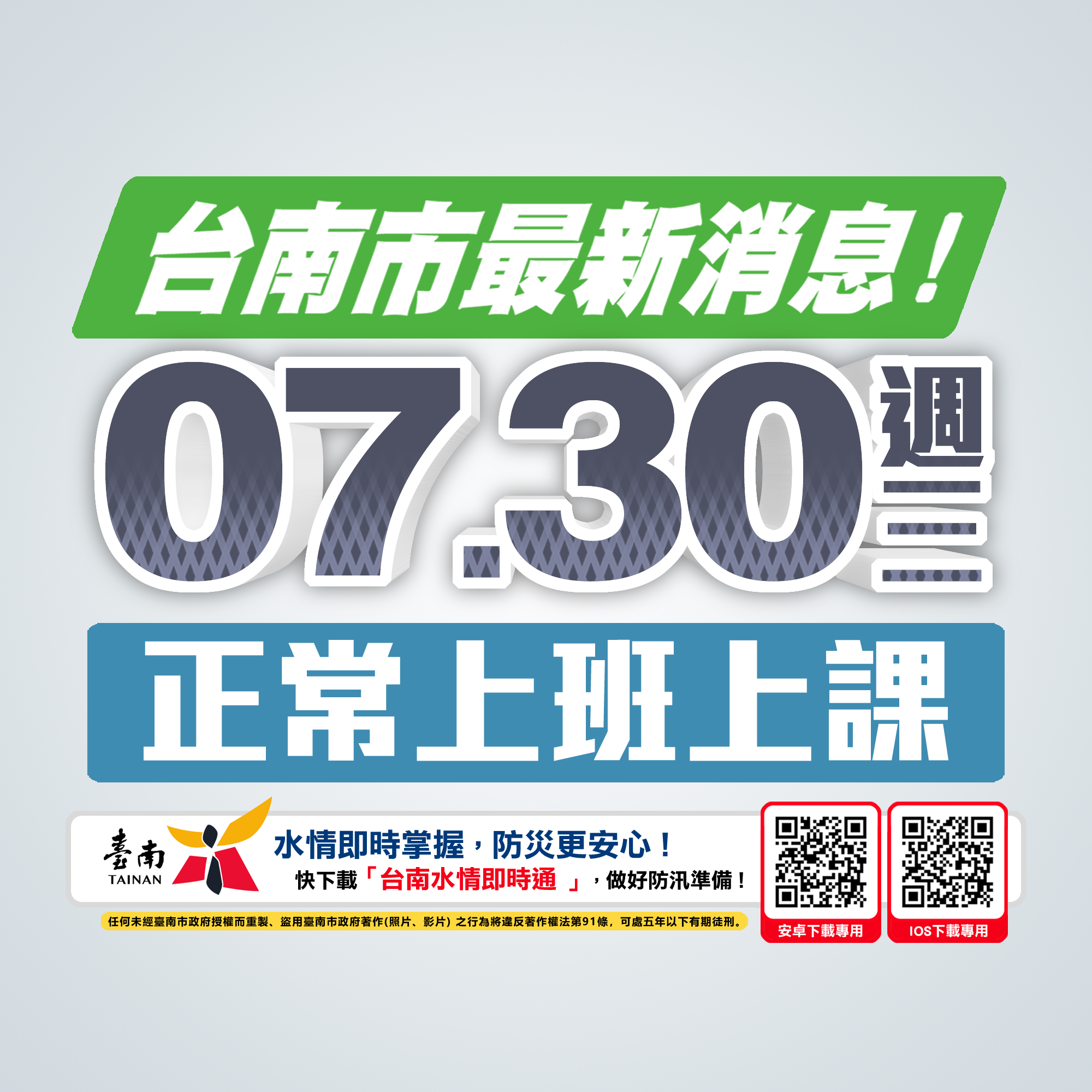 台南市政府指出,截至7月29日15時45分,台南市累計災情共95件,其中多數為積淹水案件共31件、民生基礎設施毀損共16件,以及其他零星路樹倒塌、房屋毀損等,市府各單位皆第一時間出動人力處理。台南市政府提醒,民眾應持續密切關注氣象動態,市府也會以嚴謹務實的態度加強戒備,做最好的準備、最壞的打算,希望大家都能平安度過本次大豪雨的考驗,市民朋友如有災情反應,請隨時通報1999,亦可利用「台南水情即時通」手機APP掌握最新情況。
