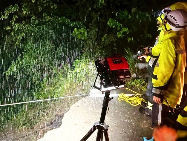 警方表示,71年次的蔡姓男報案指稱,他在行經該路段時因豪雨視線極差,他為會車而將車輛路邊停靠,目睹對向一輛NISSAN銀色自小客車行駛途中車燈瞬間消失墜入山谷,不久後李姓男子爬上路面自稱是該車駕駛,向蔡男求救表示車上還有妻子與3名子女,請求幫忙報案,李男未等回應隨即再下去返回現場救家人,詎料不久後道路嚴重坍方範圍擴大,該男子也跟著失聯。
