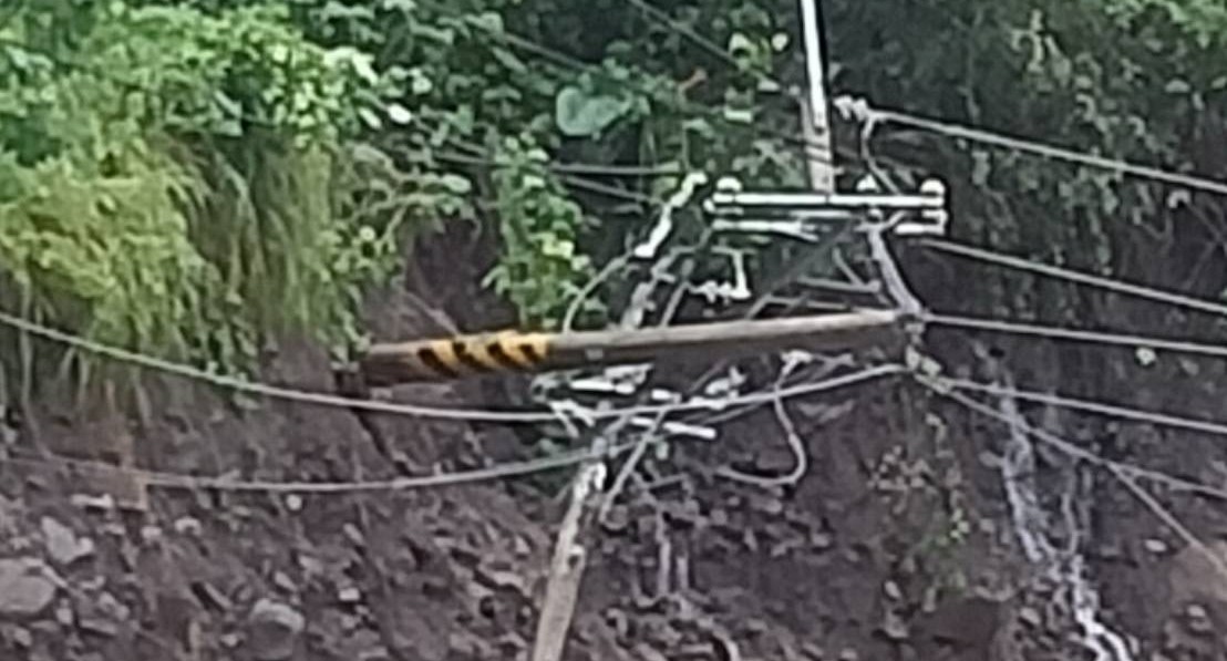 土石流造成電桿流失。(記者翻攝)