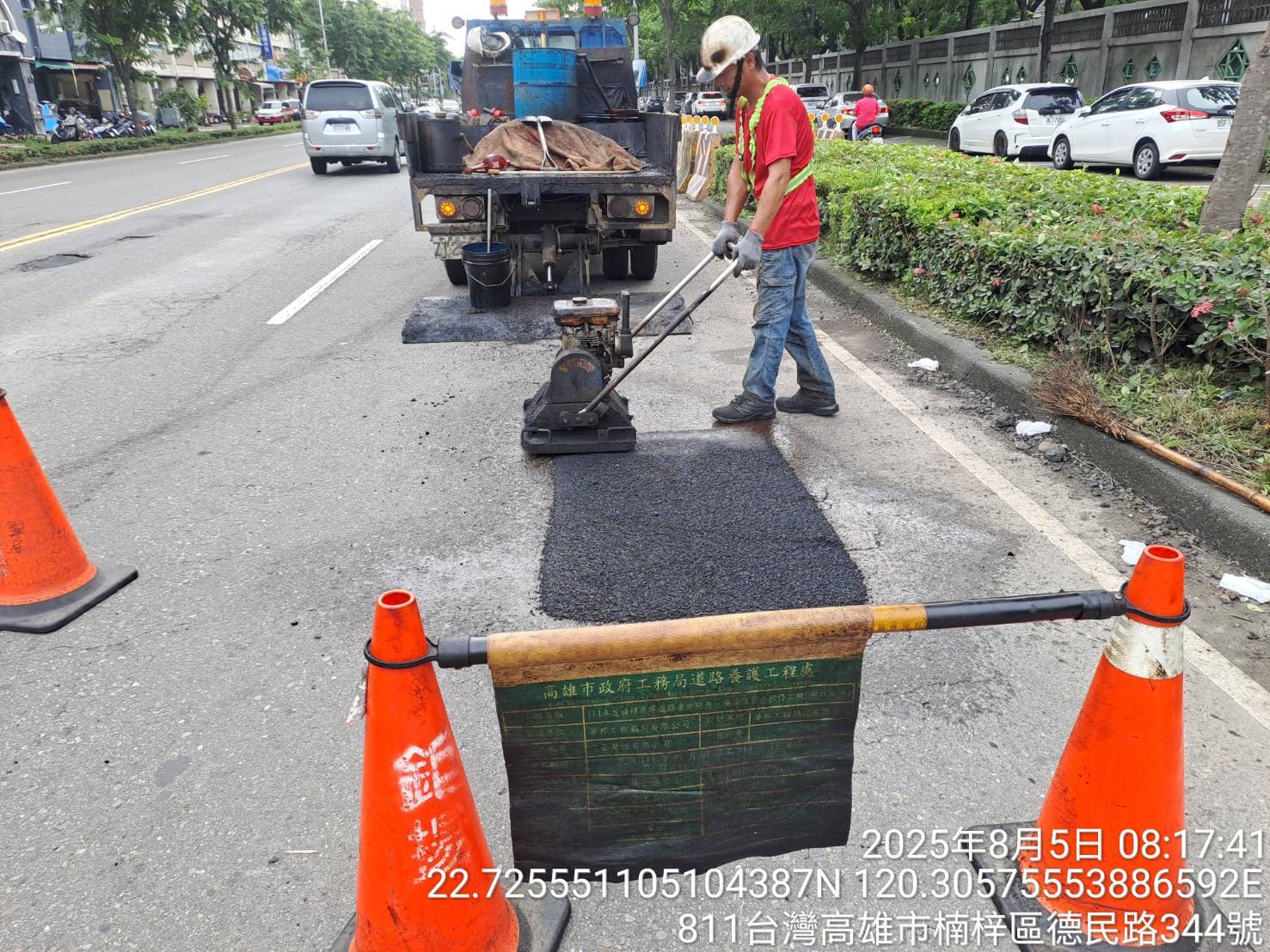 道工處補充,今(114)年度市府已籌措9.87億元進行全面道路維護,第一批已投入約4.4億元,並刨鋪完成岡山區岡燕路、茄萣區莒光路三段等237條道路;第二批預計再投入3.46億元,天晴後,道工處8月起對於全市路面大範圍破壞路段進行全面刨鋪,預計將於8月完成大社區和平路一段、梓官區嘉展路等;9月完成小港區沿海一路、前鎮區草衙一路等;10月完成小港區康莊路等。另已向中央爭取約2.58億元,預計刨鋪楠梓區德民路、新興區中山二路等13條,施工中若交通改道造成不便,仍請市民多加配合施工交通維持。