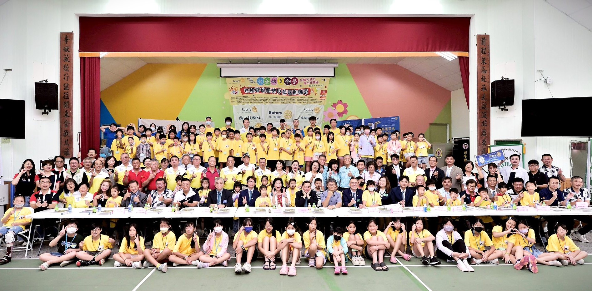 今年的陣容更是空前盛大!除了扶輪3510地區第9與第11分區,還新增了第3、第6及第10分區的友社加入行列,甚至遠從屏東的潮州扶輪社也熱情參與。此外,岡大獅子會以及多個社福團體也共襄盛舉,讓整個夏令營更加熱鬧溫馨、愛心滿滿。