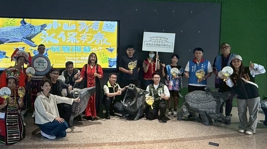 臺南市政府原住民族事務委員會與永康區公所共同主辦的《小山豬永保安康―Vavuy•漫遊》特展,於永康區社教中心展示廳熱鬧開幕。(記者翻攝)
