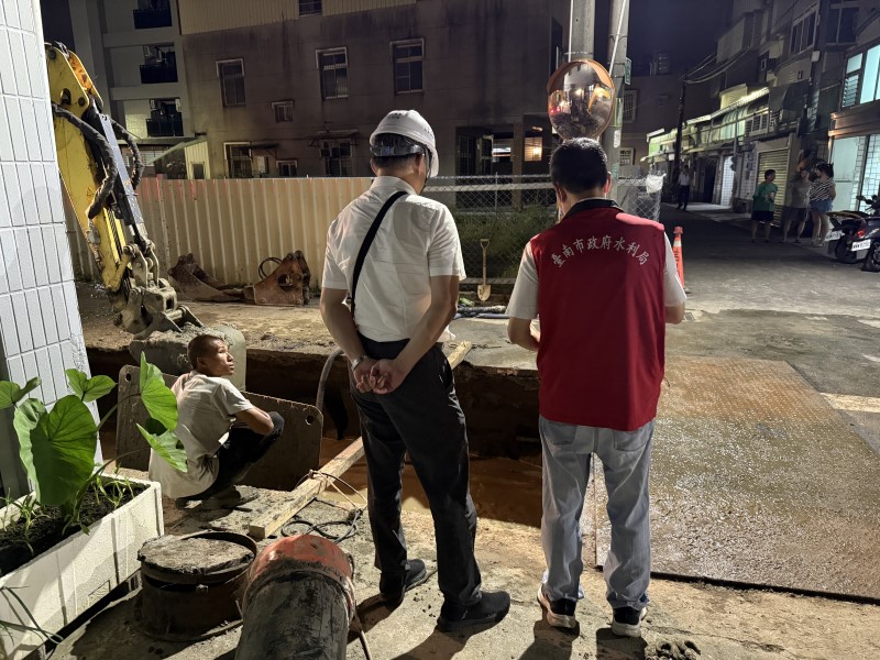 【記者陳春寶/臺南報導】臺南市仁德區三甲八街56號民宅旁,經通報地面有局部下陷,經評估現地為自來水管線破損漏水導致路面掏空下陷,污水管線則受其影響亦有損壞,故於自來水公司配合進行管線檢修後,昨(12)日傍晚約7點左右,水利局於現場成立前進指揮所,並依圖資判斷暫無涉電力、瓦斯等管線後,立即開挖進行搶險作業,目前已於開挖區前後設置交通錐、連桿及警示燈等交維設施,以提醒用路人注意安全。