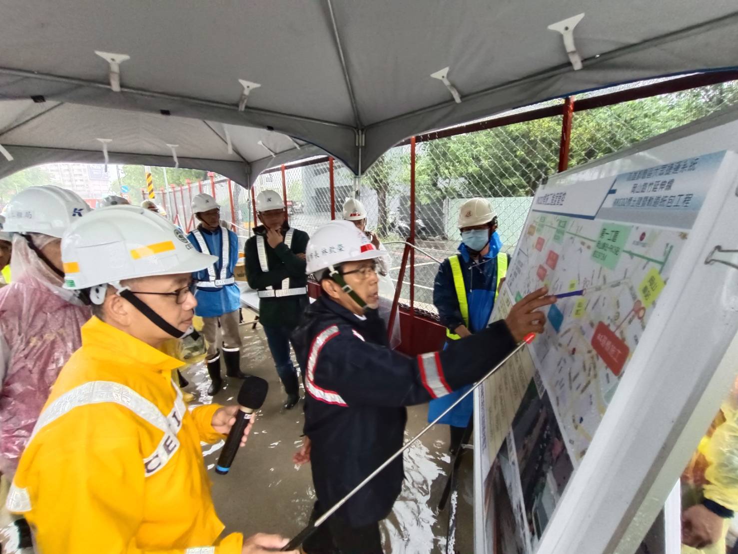 圖說-林欽榮副市長於今日下午視察岡山路竹延伸線第2階段RKC02標工程防颱整備及資源部署情形