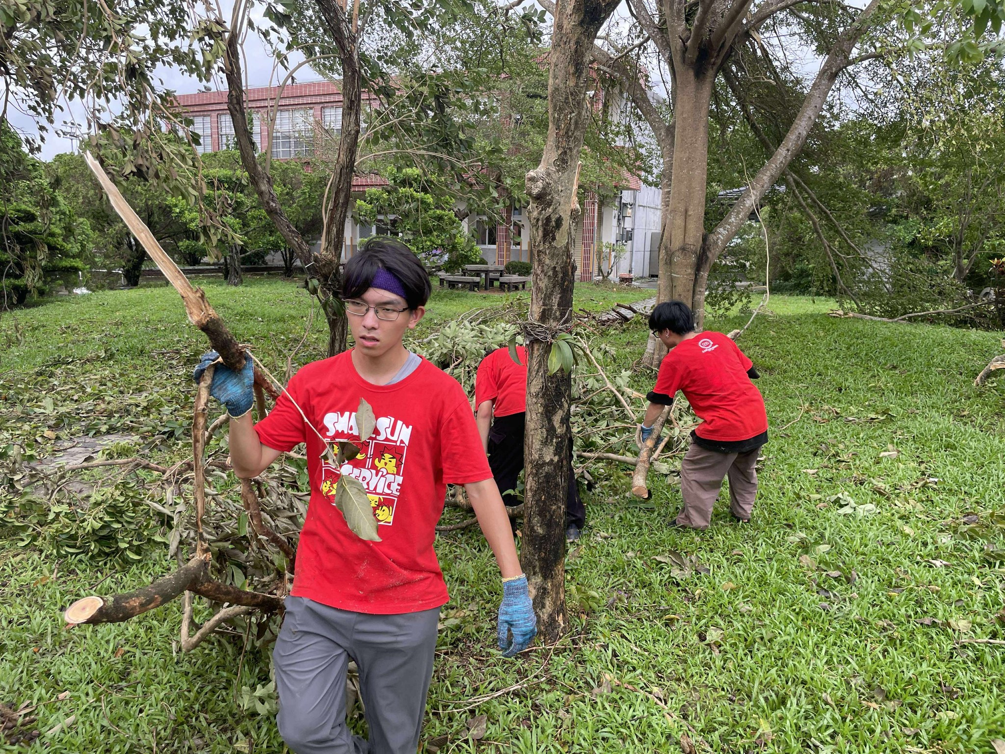 崑山科技大學「臺南青年志工中心」第一時間進駐麻豆,協助太子宮旁文旦果園清除落果,學生們頂著酷熱天氣,協力減輕果農負擔;長榮大學「田園景觀」團隊於後壁社區協助長輩清理雜物、整理環境,並透過「USR綠色社區根與芽行動計畫」投入東區巴克禮紀念公園的倒樹清理工作,甚至還有來自史瓦帝尼及烏干達的國際生加入志願行動行列。