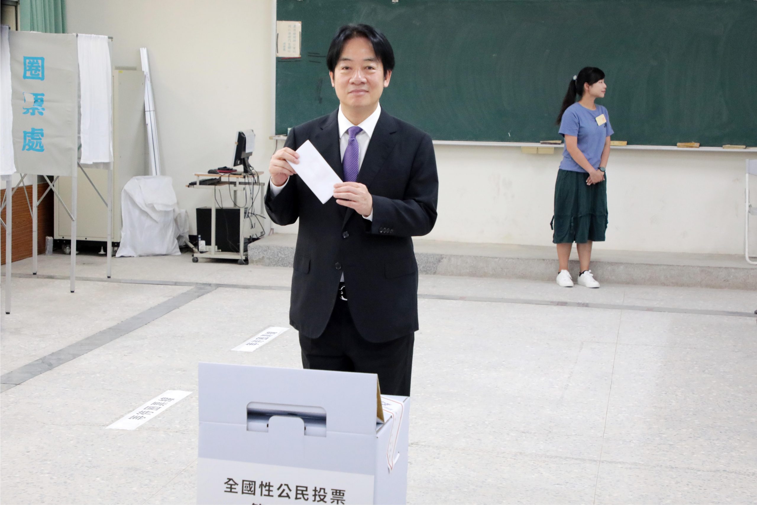 今(23)日為全國性公民投票案第21案投票日,戶籍設於臺南市的總統賴清德也專程返回臺南,在市長黃偉哲與主委葉澤山的陪同下,於安平區投開票所完成投票,展現民主實踐的精神。