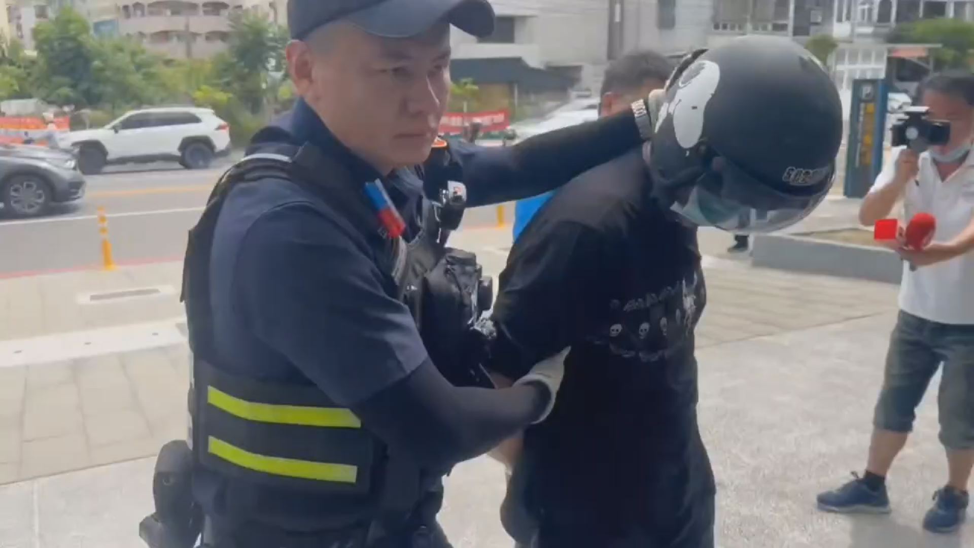 潘男為了躲避警方追緝,騎乘機車逃至大寮區一處木材工廠,潘男看見有輛小貨車停在工廠內,便趁機上車發動引擎,而當貨車司機上前試圖阻止時,潘男竟拿出預藏手槍向該司機比劃,同時強行將車輛開走。警方隨後通報警網進行攔截圍捕,最終在小港區與前鎮區交界處,發現潘男正在接應洪姓友人,隨即尾隨並追緝潘男,而後也順利將兩人逮捕歸案,並在車內查獲一把裝有6顆子彈的改造手槍。